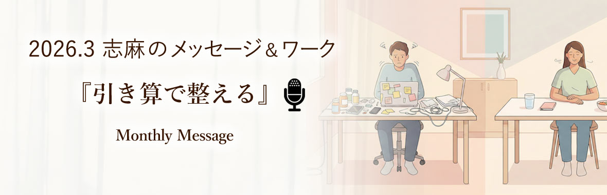 February 2026 こんにちは。志麻の 今月のメッセージ です。 メッセージは、文字と音声でお届けしています。…
