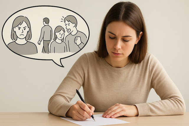 とりわけ「思考として恨んでいる」段階では、ご自身でも恨んでいると自覚しやすく、出来事の時系列や自分の気持ち、関係する状況を紙に書く、あるいは信頼できる人に“整理のために”話してみると、不思議なほど簡単に「自分の中のストーリーの偏り」に気づくことがあります。