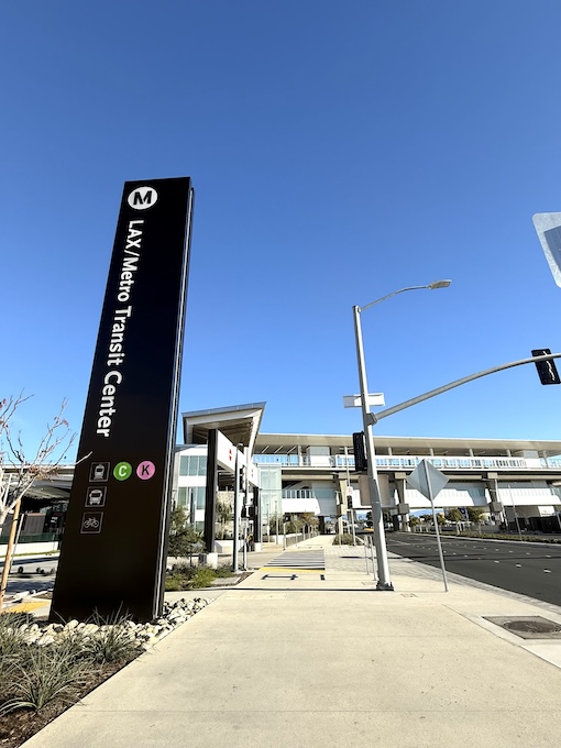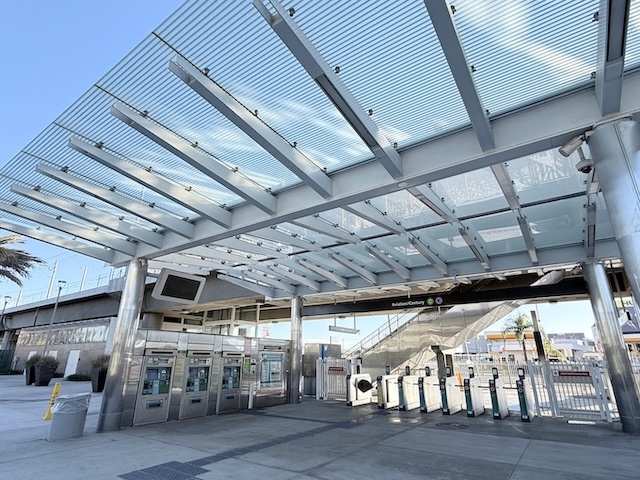 今回、私が宿泊したホテルから10分ほど歩いた場所に、2025年6月に開業したばかりの壮観な LAX/Metro Transit Center駅 がありました。