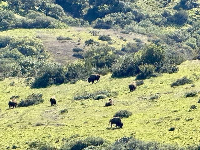 今回はAdventure Tourに参加しました。島にしか生息していないカタリナ島キツネや鹿には会えませんでしたが、珍しくアメリカバイソンの群れを遠目で観ることができました。このバイソンたちは、アメリカ映画撮影のために持ち込まれて、そのまま住み着いているとのことです。