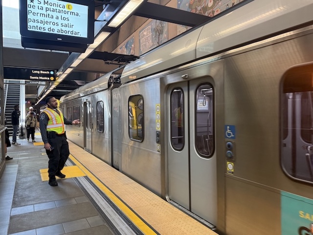 ロサンゼルスのメトロでは、同じホームに異なる路線の電車が入ってくることがあります。たとえば、C Line(C線)とK Line(K線)/ A Line(A線)とE Line(E線)のように、駅を共有している路線では同じホームを使うのです。日本の都市鉄道に慣れていると、同じホームには同じ路線の列車が来る、という感覚がしみついているので、ついその前提で見てしまいます。