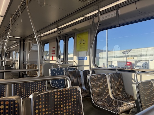 車内に戻りますが、間違えたK Lineは清潔で、朝の利用者は殆どおらず。車内での飲食禁止が守られています。空港関係やスターバックスのオフィスが近くにありました。