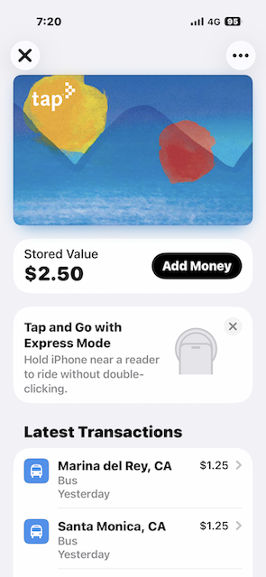 ロサンゼルスでは、日本のSuicaやICOCAのように TAP という交通アプリが使えます。
